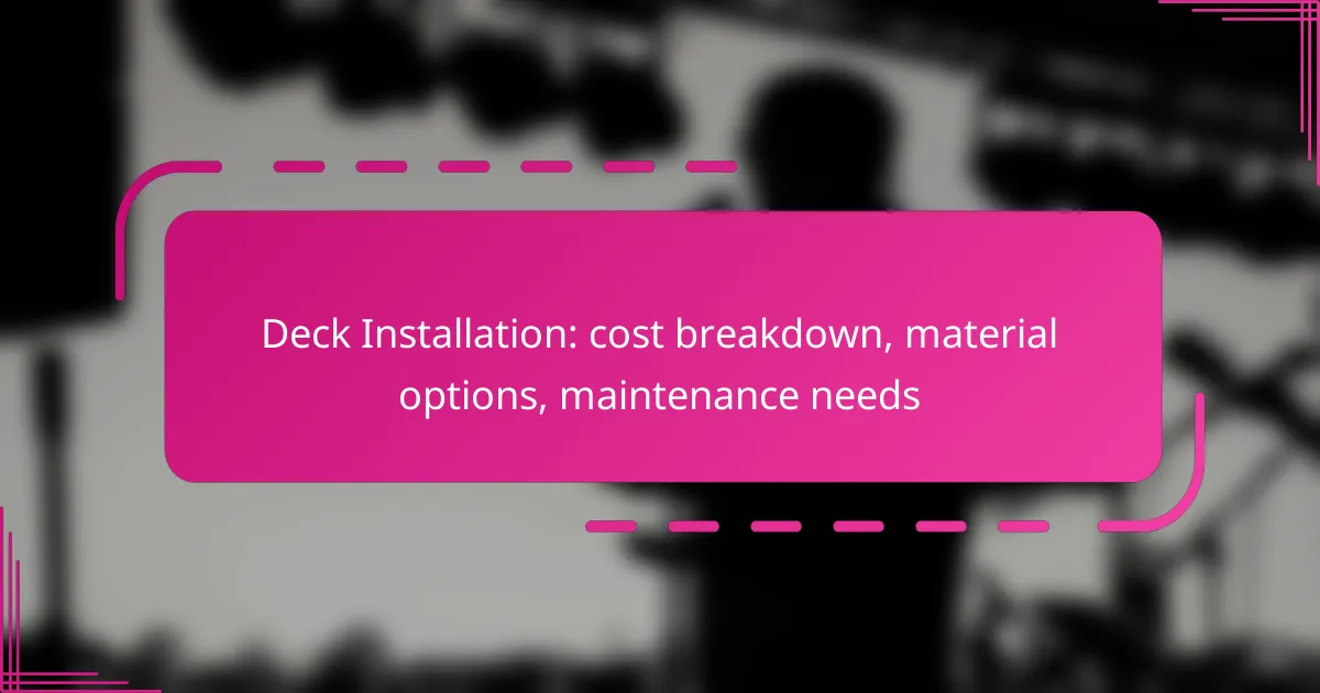 The average cost of deck installation in the United States typically ranges from several thousand to over ten thousand dollars, depending on materials and size. Homeowners should consider both the initial installation costs and long-term maintenance when budgeting for a deck.