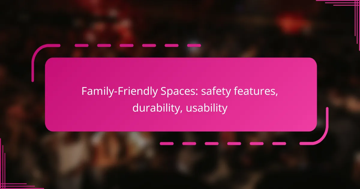 Family-friendly spaces in urban areas are designed with a focus on safety, durability, and usability, creating environments where children can play and learn while parents feel secure. These spaces incorporate essential safety features such as secure play equipment and soft ground surfaces, ensuring enjoyable experiences for all. Additionally, the use of durable materials enhances the longevity and practicality of these areas, making them ideal for families seeking engaging and safe recreational options.