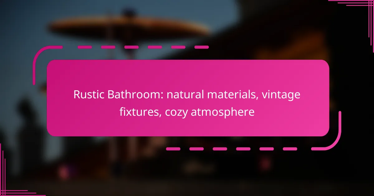 A rustic bathroom typically features natural materials, vintage fixtures, and a cozy atmosphere that evokes a sense of warmth and simplicity. Key design elements include earthy color palettes, ample natural light, and textured surfaces that enhance the overall aesthetic.
