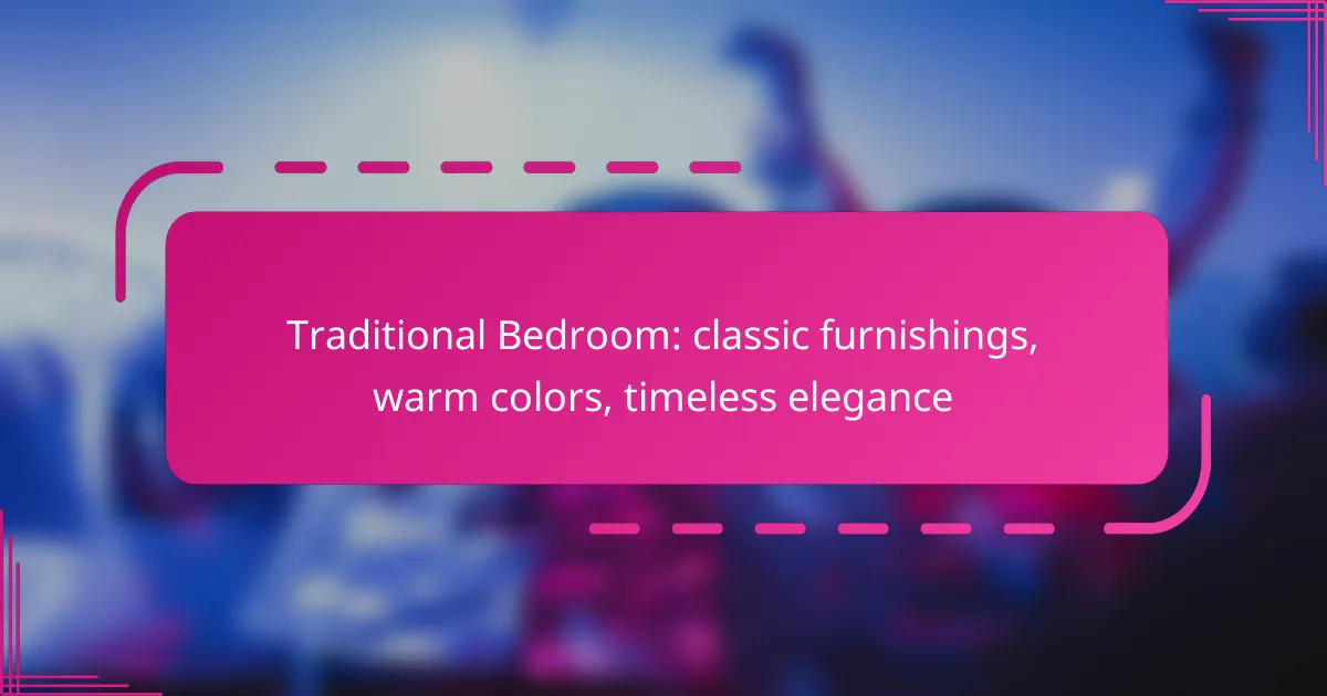Timeless elegance in bedroom design is characterized by a harmonious blend of classic furnishings, warm colors, and refined details. Key elements include symmetry, high-quality materials, and sophisticated lighting that together create a serene and inviting atmosphere.